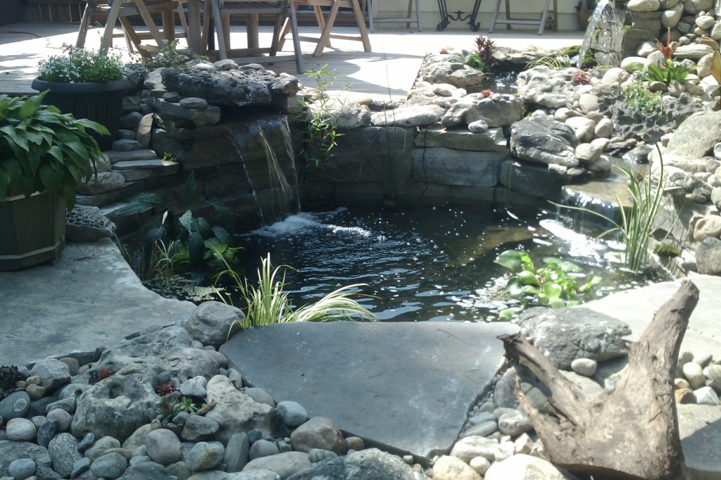 Our biggest challenge in this project was it had to be ascetically pleasing from all angles. It was visible from the kitchen window, and surrounded by 3 decks. The water feature was the focal point, and it had to look good from everywhere.
